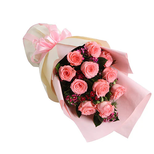 "Pink Perfection" Pink Roses Bouquet + Rose Gold Balloons