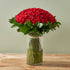 Indulge in a lavish display of 100 premium red roses presented in an exquisite vase, perfect as a luxurious gift for your loved one. Elevate any occasion with the elegant and exclusive beauty of these vibrant roses.