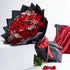 A lovely bouquet of roses wrapped in a nice black wrapping.