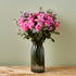 Indulge in the luxury of our 25 pink roses in vase with statice blue and wax. Adorned with delicate statice blue and wax accents, these roses exude elegance and sophistication. Perfect for special occasions or just to add a touch of refinement to your home decor. Experience the beauty of premium flowers.