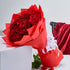 A stunning bouquet of 40 red roses with red wrapping.