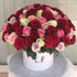 A stunning arrangement of 120 assorted roses in our signature hatbox.